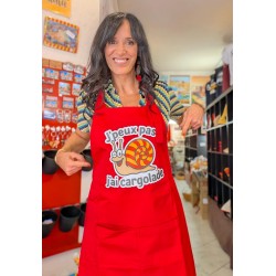 Apron red with catalan snail and the inscrpition " j'peux pas j'ai cargolade"
